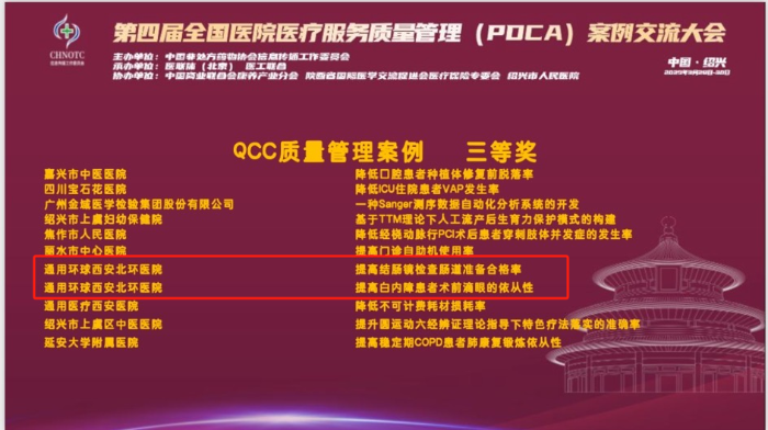3月28日-30日,第四届全国医院医疗服务质量管理(PDCA)案例交流大会在浙江绍兴隆重举行。全国25个省市区共计190多个案例项目进入决赛。经过激烈角逐,我院选送的《提高结肠镜检查肠道准备合格率》《提高白内障患者术前滴眼依从性》两项案例脱颖而出,双双荣获全国大赛三等奖。