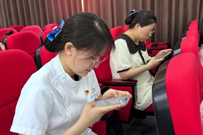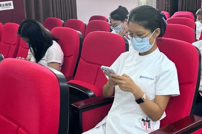 本次考核共设八个场次,为确保临床护理工作顺利进行,我院特别安排在9月24日的14:30-15:00和15:00-15:30两个时段,让相关护理人员分批次参加考试。考试采用e答平台线上答题的方式,既保证了公平性,又提高了效率。同时,集团总部的老师通过腾讯会议进行视频监考,我院护理部翟海侠主任及培训组人员则在线下监考,实现了远程监控与实时指导的双重保障,确保了考试的公正性。