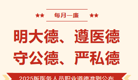 广大医务工作者是人民健康的守护者,是推动卫生健康事业发展的重要力量。新时代新征程对医务人员提出新的更高职业操守要求。为进一步规范医务人员道德行为,弘扬崇高职业精神,践行社会主义核心...