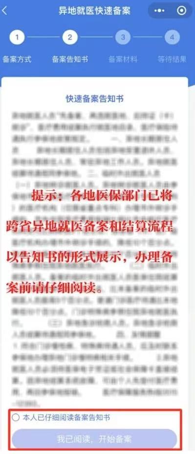 第六步:阅读备案告知书后,选中“本人已仔细阅读备案告知书”后,点击“我已阅读,开始备案”按钮。