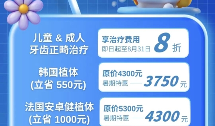 还在为孩子的牙齿排列担忧?还在为缺牙影响咀嚼与自信而烦恼?悠长暑假,正是为全家口腔健康“充电”的黄金期!通用环球西安北环医院第一届“健康生活节”特别献礼,助您轻松拥有健康笑容!
