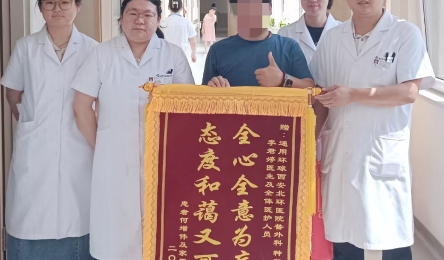7月12日清晨,我院普通外科的医护人员如往常一样开始一天的忙碌工作。然而,当护士们走进护士站时,却意外发现一面鲜艳的锦旗静静悬挂在墙上,红底金字的“柳叶刀柔是绝技,杏林春暖乃仁心”格...